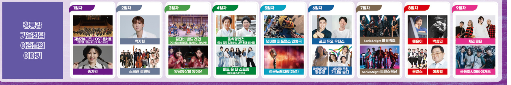 | 10/18(토) | 환영 花담 | 개막공연, 지브리&디즈니 OST 콘서트, 송가인 축하쇼 |