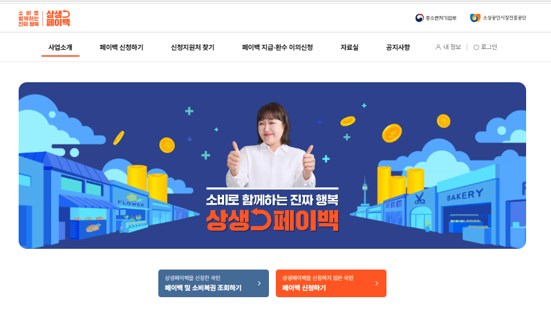 - 인터넷 브라우저에서 “상생페이백.kr” 접속 또는 포털 검색