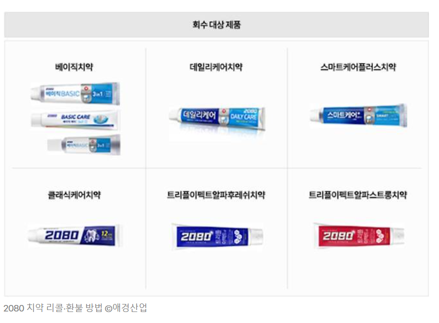 과연 내 집에 있는 2080 치약은 안전한지, 회수 대상은 어떤 제품인지, 환불은 어떻게 받을 수 있는지 지금부터 자세히 알려드리겠습니다.